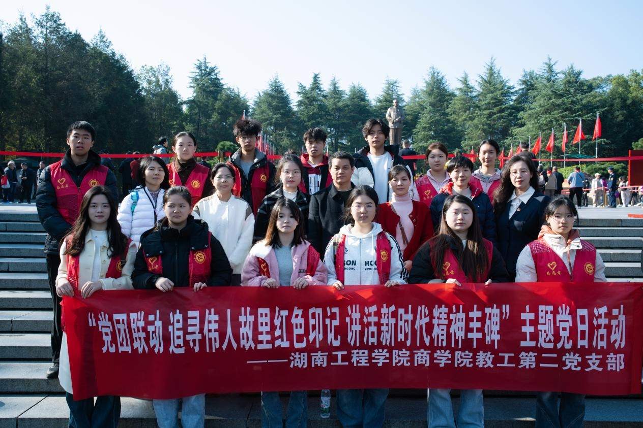11月22日,全国党建工作样板支部、全国高校“双带头人”教师党支部书记“强国行”专项行动团队——商学院教工第二党支部在伟人故里韶山毛泽东故居开展“党团联动追寻伟人故里红色印记讲活新时代精神丰碑”主题党日活动。通过现场参观、微党课讲授、心得分享等多元形式,让党员教师与青年学子在沉浸式体验中接受红色文化滋养、坚定理想信念、强化责任担当