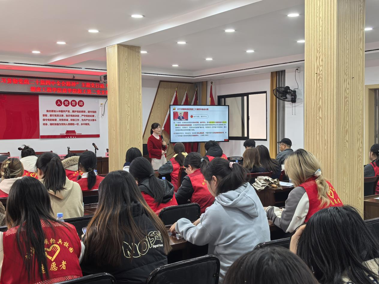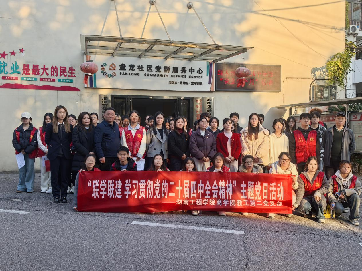 11月21日下午,全国党建工作样板支部、全国高校“双带头人”教师党支部书记“强国行”专项行动团队——商学院教工第二党支部在岳塘区宝塔街道盘龙社区党群服务中心举办“联学联建 学习贯彻党的二十届四中全会精神”主题党日活动。盘龙社区党员、居民代表及学生入党积极分子等40余人齐聚一堂,共同学习领会全会精神。