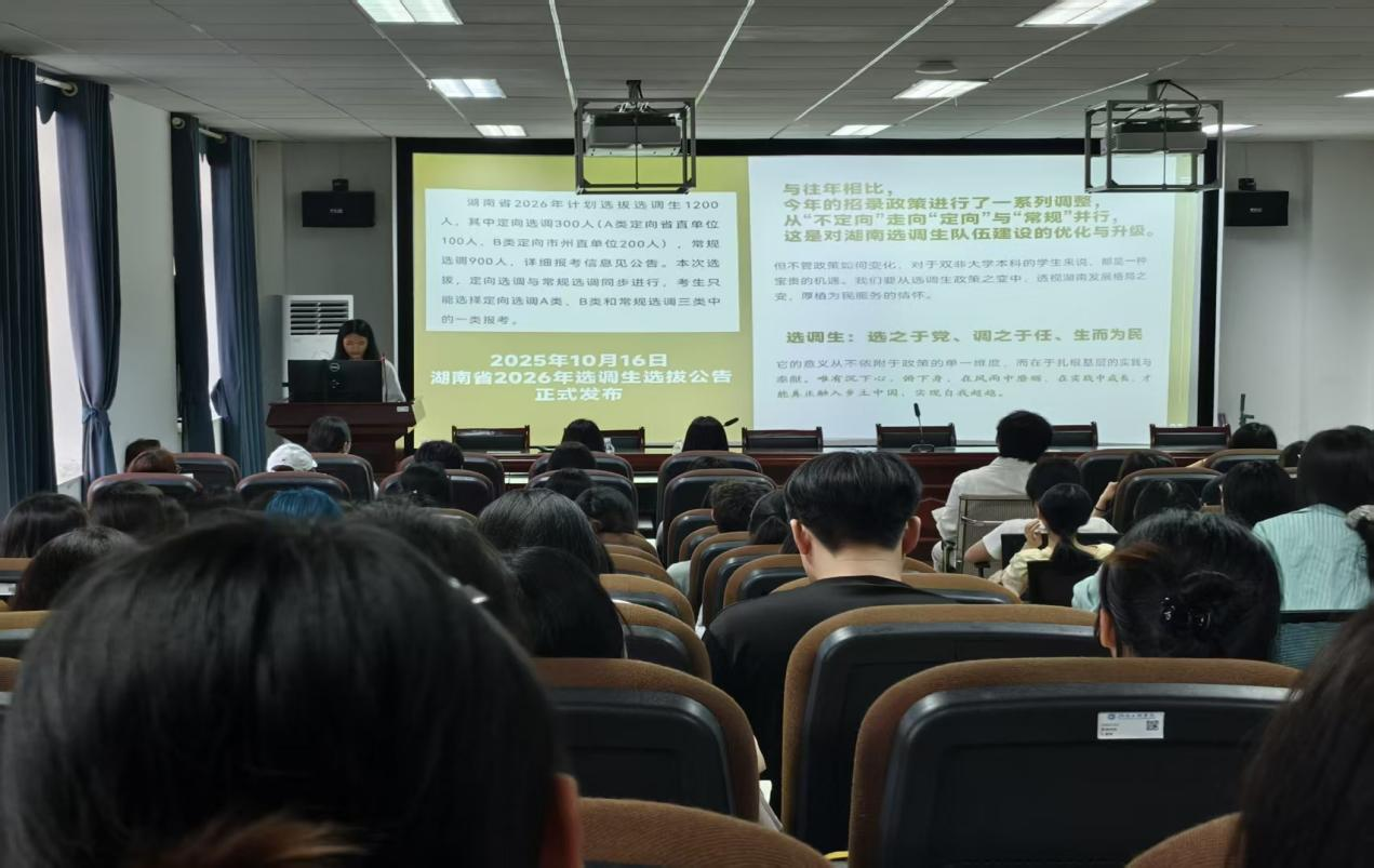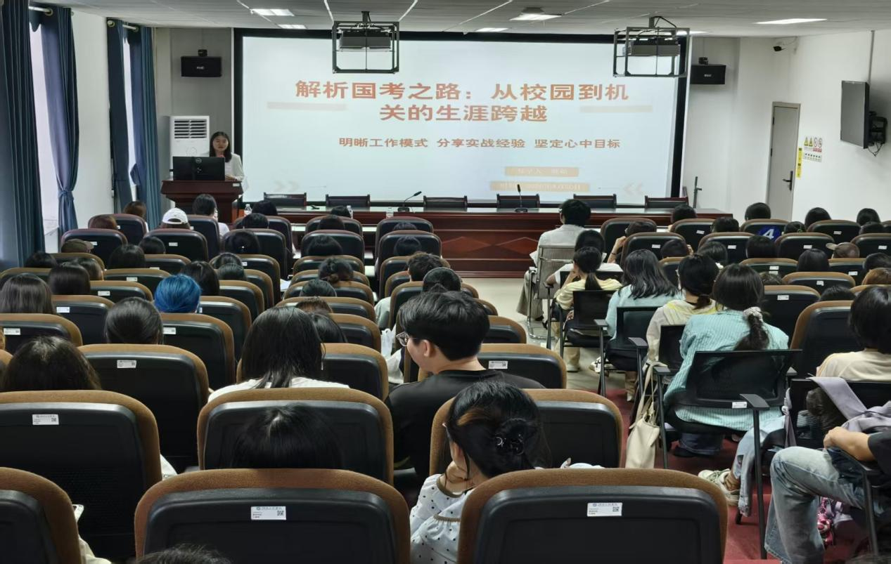 分享中,周蕙媚详解选调生备考与基层工作,鼓励大家扎根基层、服务国家;陈灿分享国考备考技巧、时间规划与工作日常,提醒同学们提早规划;欧阳丽结合西部计划志愿服务经历,讲解基层服务对国考的助力,引导大家拓宽就业选择。
