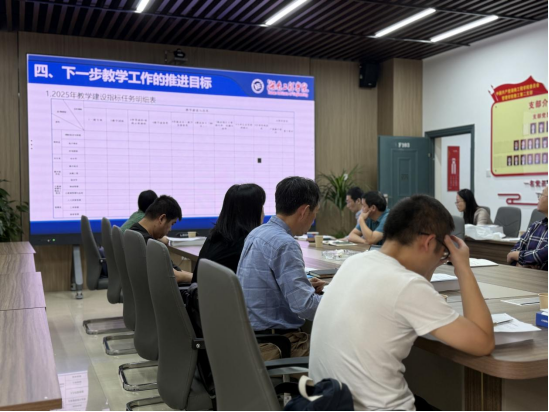 会议伊始,副院长谭赛系统梳理了2025年商学院在教研教改领域取得的成果。她指出,上半年学院在教改项目、教学竞赛、教学获奖、专业建设、课程建设、教材出版等方面成绩显著,并发布了《2025年教学建设指标任务明细表》。该表预以量化指标明确各专业在课程优化、师资培训、产教融合等维度的建设目标。针对教学过程中存在的商科专业建设、教学团队建设及学科交叉融合等痛点问题,谭赛提出“三步走”改进方案:一是建立行业需求动态监测机制,及时更新人才培养方案;二是加强教师队伍建设,针对不同层次的专业教师水平,给予不同程度的扶持;三是鼓励学生积极参与学院组织的学科交叉活动。