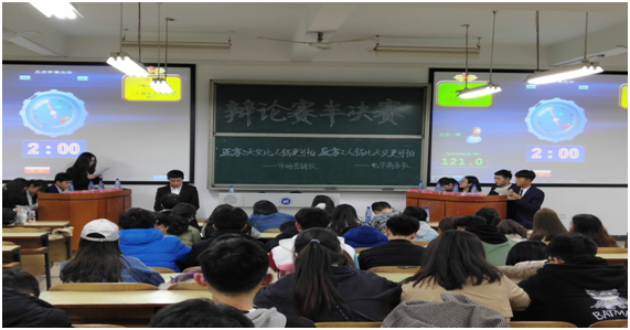 3月10日晚上7:00,时隔一个寒假,期待已久的管理学院新生辩论赛半决赛在新校区教学主楼D202拉开帷幕,经过前几场专业赛的激烈比拼,以及假期一个多月的积淀,辩手们的辩论技巧与团队合作意识都得到了巨大的提升。本次辩论赛不仅为18级新生提供了一个展示自我的平台,更为管理学院辩论队注入了新的力量。