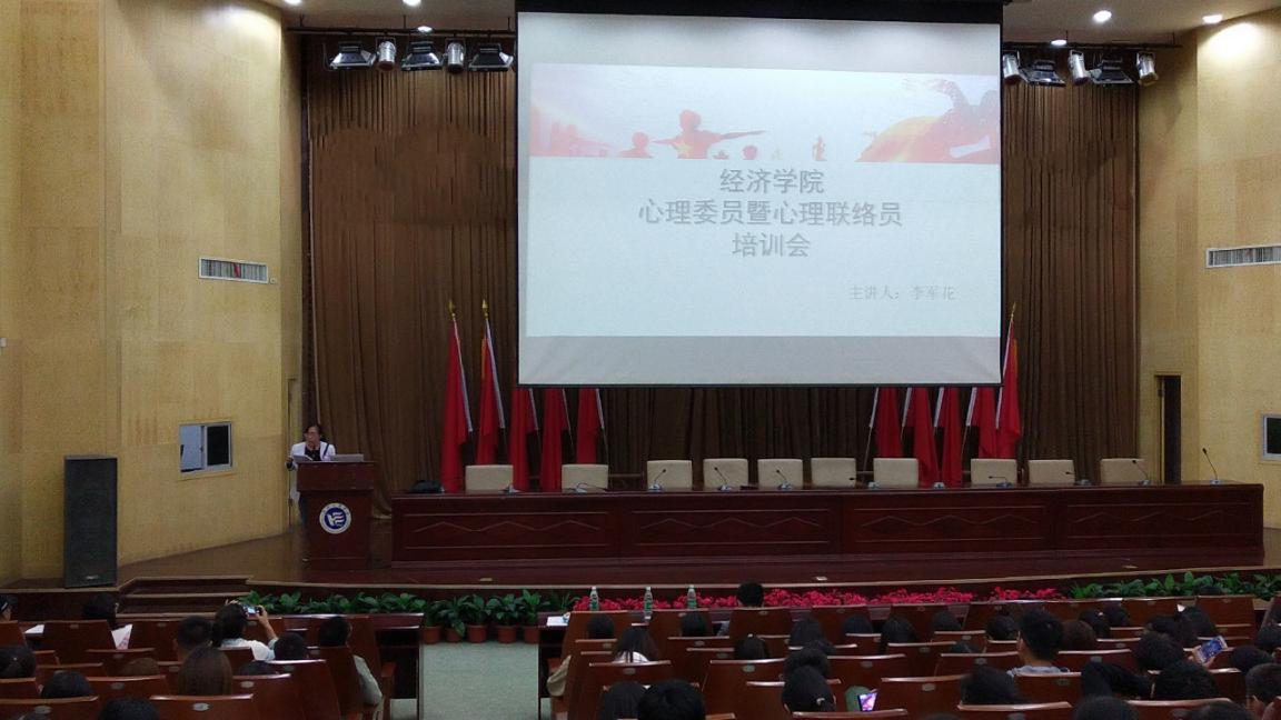 2019年5月6日下午14:30,经济学院在图书馆一报告厅召开了全体心理委员暨心理联络员培训会。此次会议由经济学院学办主任李军花主讲,全体心理委员及心理联络员参加。