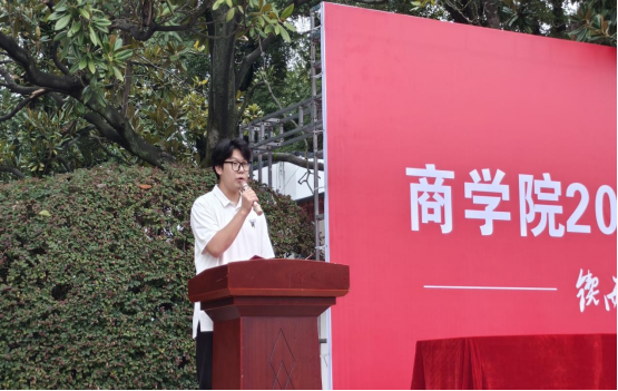 新生代表、物流管理2501班黄景阳在发言中表示:“我们如同渴望翱翔的鹏鸟,终于在此刻迎来了托举我们振翅高飞的‘大学之风’”。随后,他带领全体新生庄严宣誓,“秉承锲而不舍、敢为人先的校训,怀社稷苍生之念,担民族复兴之责”的誓言铿锵有力,彰显了新生们的青春担当。