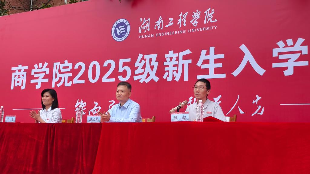 金秋九月,丹桂飘香。9月29日下午,湖南工程学院商学院2025级新生入学教育大会在我校书院路校区隆重召开。商学院副院长(主持行政工作)潘立军、副院长谭赛、副书记谭超出席大会,商学院教师代表、全体辅导员、优秀学生代表及 2025 级全体新生参会,大会由谭超主持。
