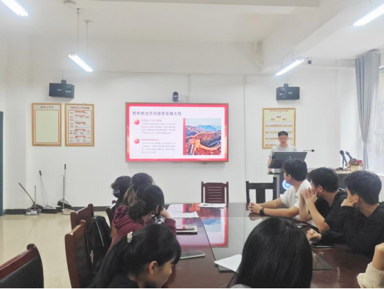 为深入强化理论武装、凝聚党员奋进力量,切实把思想和行动统一到党中央决策部署上来,10月17日,商学院学生第四党支部于G-115开展“庆祝新中国成立76周年,砥砺奋进新征程”专题学习研讨活动,支部全体党员参会学习。