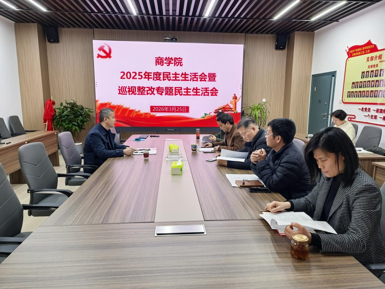 3月25日,商学院党委在F103会议室召开2025年度民主生活会暨巡视整改专题民主生活会。学校党委委员、副校长张小刚出席会议并作点评讲话。学院党委书记徐运保,副院长(主持行政工作)潘立军及其他班子成员参加会议。