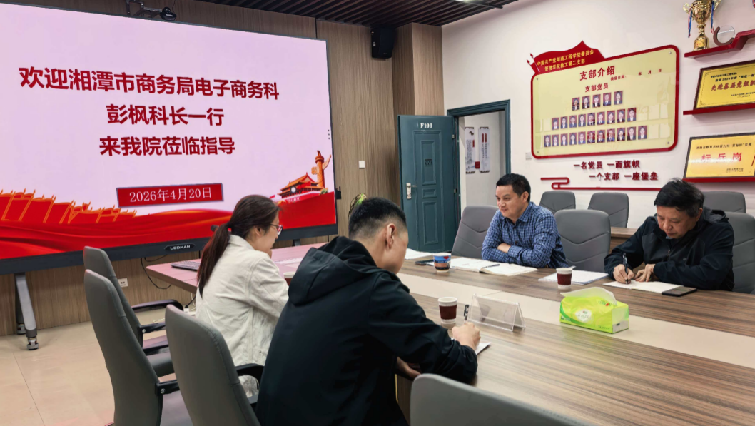 为进一步整合政校企资源,推动湘潭市跨境电商高质量发展,4月20日,湘潭市商务局电子商务科科长彭枫、副科长伍剑波一行赴湖南工程学院商学院,专题调研湘潭市跨境电子商务协会筹建工作。商学院党委书记徐运保,特邀专家胡俊达,电子商务专业教研室主任李立及教师代表参加座谈。