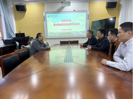 10月24日下午,商学院在F104会议室举行座谈交流会,特邀华中科技大学秦虎教授莅临学院,就学位点建设与科研能力提升工作进行深入指导与交流。商学院副院长(主持行政工作)潘立军、副院长曾贵、数字经济专业系主任及部分骨干教师代表参加了此次会议。